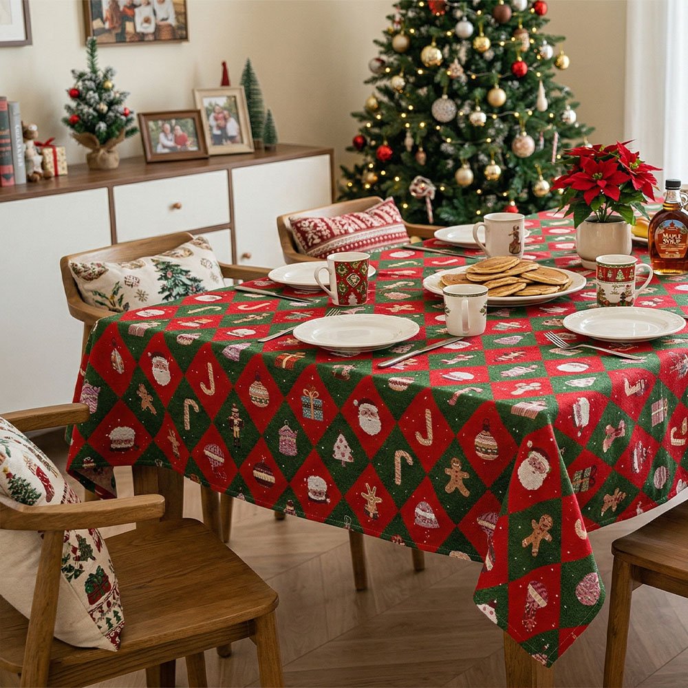 - Use: Tablecloth for dining tables, side tables, and holiday table settings