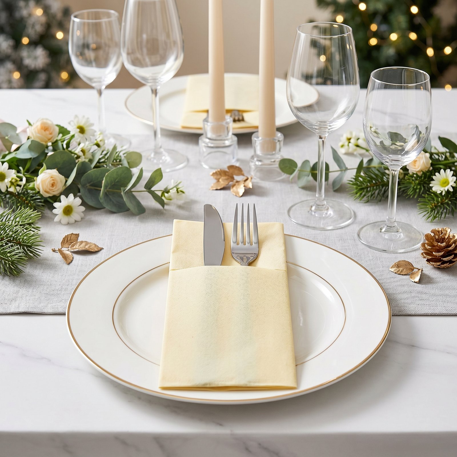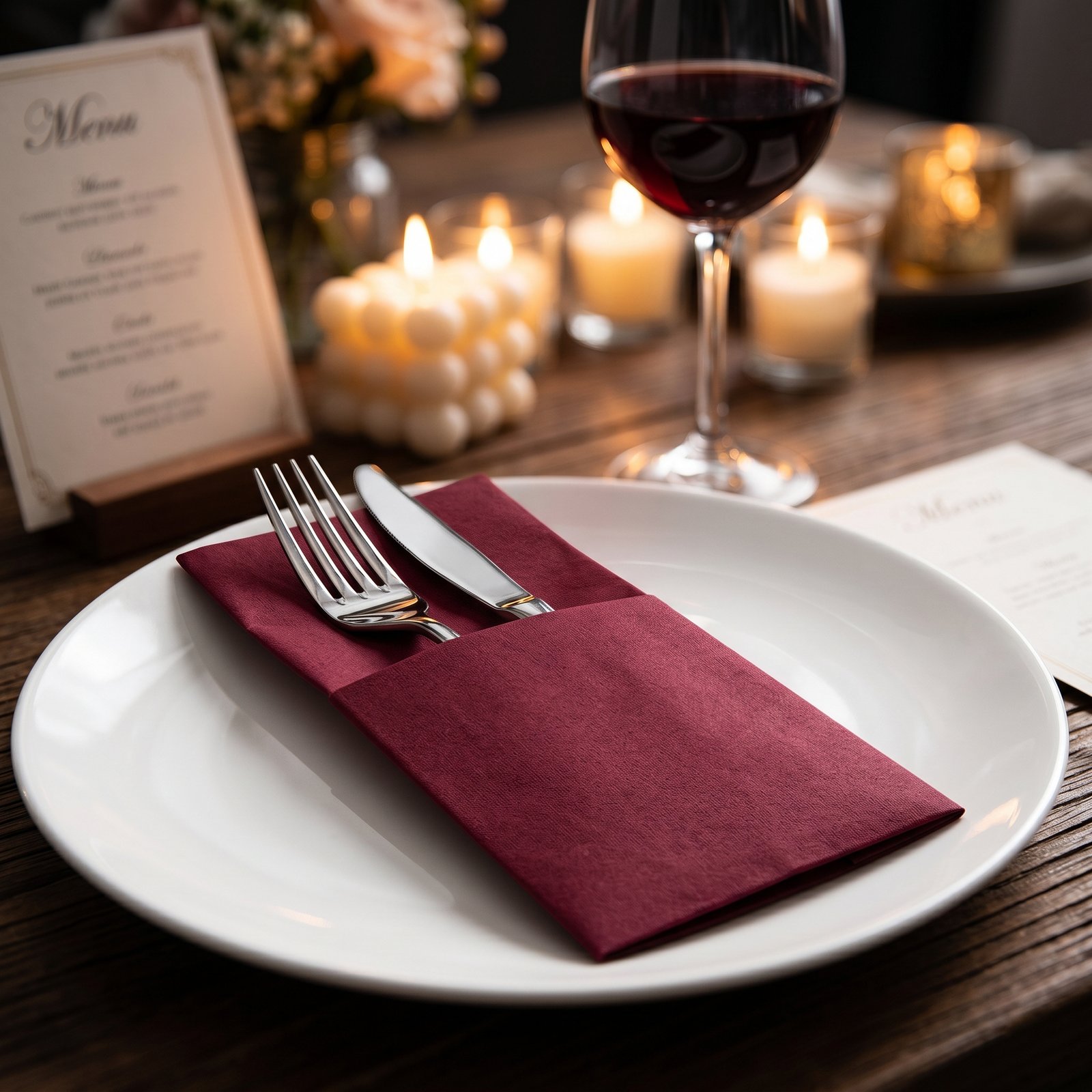 Rich linen-like texture, premium thickened raw wood pulp construction, tear-resistant & lint-free with exceptional wet toughness. This elegant disposable dinner napkin delivers even eco-friendly solid coloring, gentle skin-friendly touch, and superb water absorption. Effortlessly builds sophisticated fine dining atmosphere for your home meals, while greatly reducing daily laundry chores and household cleaning burdens. Sturdy dense paper texture ensures long-lasting reliable use, perfectly elevating family dinners, holiday gatherings premium table layouts. Made from zero-additive safe raw materials, fully compliant with national food contact hygiene standards, no migrating fluorescent whitening agents, hygienic and reliable for all daily home dining scenarios.