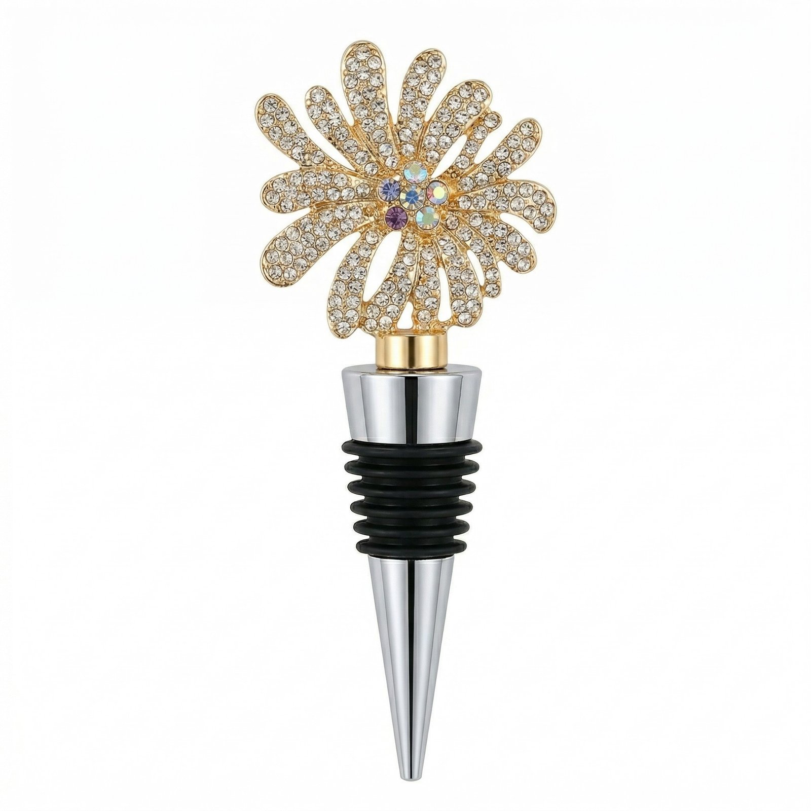 Material : Polished Gold-Tone & Silver-Tone Zinc Alloy + Clear & Multi-Color Rhinestones + Food-Safe Rubber Seal