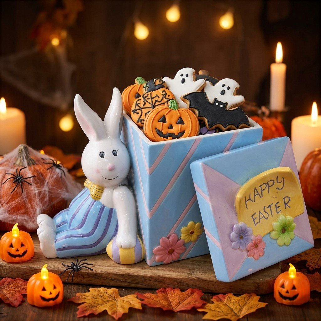• Use: Cookie Jar, Snack Storage, Easter Home Decor, Spring Kitchen Accent, Holiday Gift