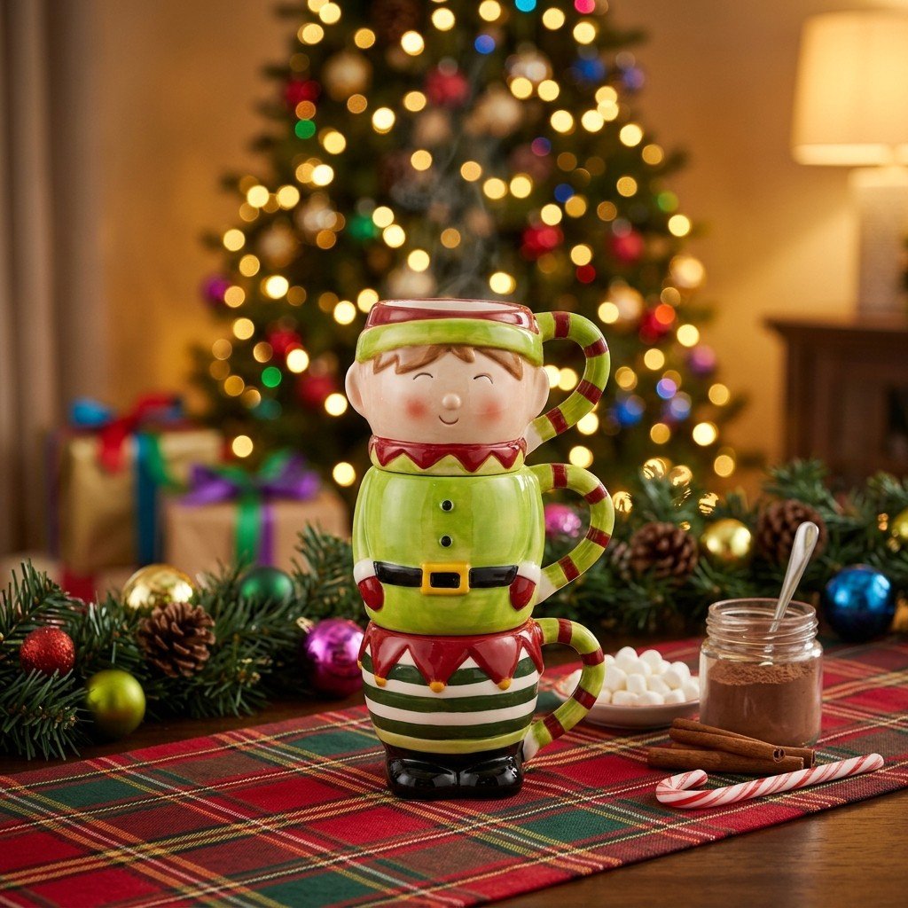 Handcrafted-Bring whimsical festive charm to your table with this adorable 3-piece stacking elf cup set! Designed to stack neatly for easy storage, these 3.7 fl oz (110 mL) mini cups are perfect for serving espresso, espresso shots, small desserts, pudding, dips, nuts, or as cute shot glasses.