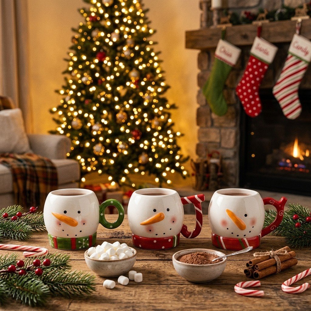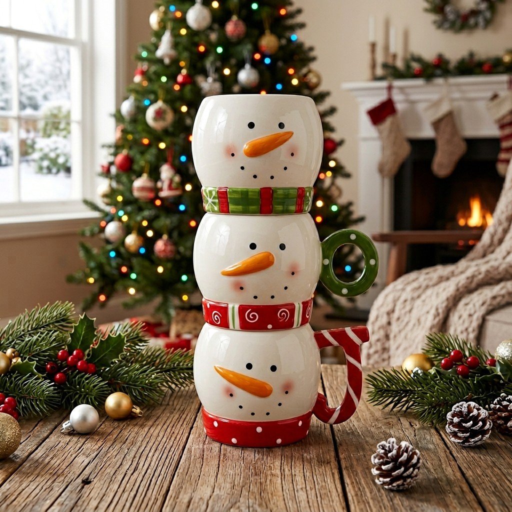Handcrafted-Designed to stack neatly for easy storage, these 9.7 fl oz (286 mL) mugs are perfect for serving coffee, hot cocoa, tea, or festive holiday drinks. A charming addition to your Christmas kitchen and a perfect gift for winter lovers!