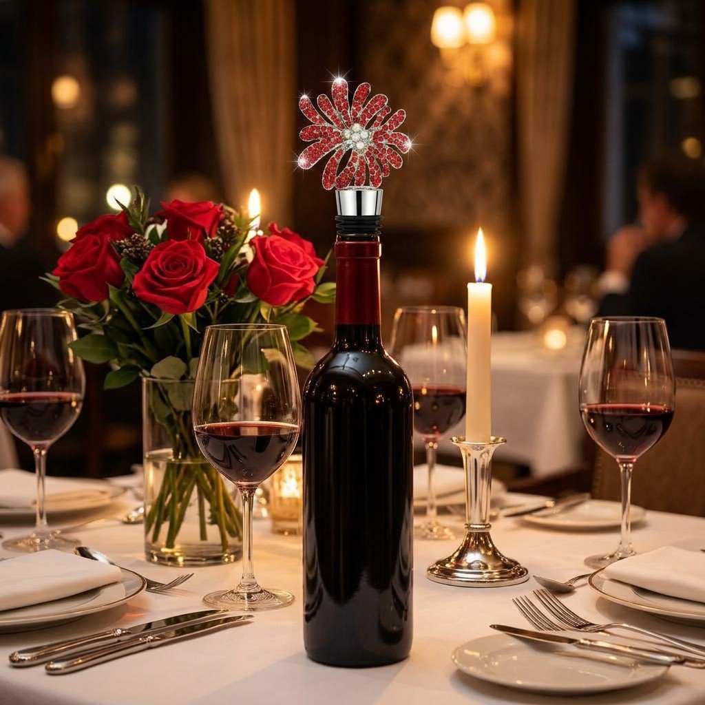 Crafted with a polished silver-toned metal base and a dazzling firework-shaped top encrusted with vibrant red rhinestones and clear crystal accents, this elegant stopper creates an airtight, leak-proof seal to keep your wine fresh for longer.